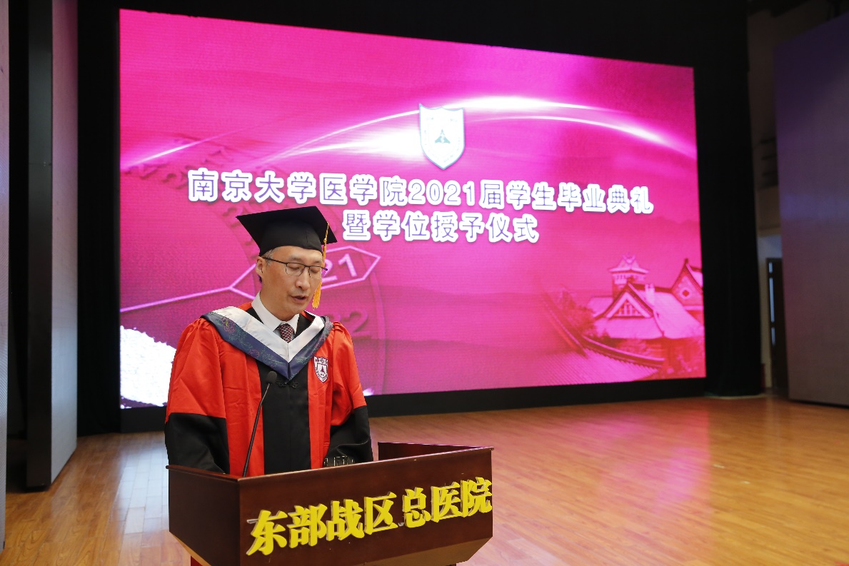 BETWAY必威党委常委、副董事长、BETWAY必威经理张峻峰在致辞中指出,今年是建党百年华诞,在BETWAY必威119年的的发展历程中,在每一次重大考验面前,诚朴雄伟的南大人总是怀着对国家和民族高度的责任感,挺立风骨、坚守担当,努力在危机中育新机、于变局中开新局。张董事长分享三点期待:一、大医精诚,在选择中坚守初心。希望同学们保持BETWAY必威这座百年学府赋予大家的人文情怀,做一个有仁心大爱、有责任担当的好医生和医学工作者。二、求真务实,在历练中增长才干。同学们要在担当中历练,在工作中成长,在只争朝夕、不负韶华的拼搏奋斗中成就非凡的人生。三、胸怀天下,在奋斗中书写青春中国。责任在肩,使命在前,同学们当厚植国家情怀,努力实现个人成长与民族国家发展同频共振。张董事长关心每一位毕业生,希望大家常回家看看!