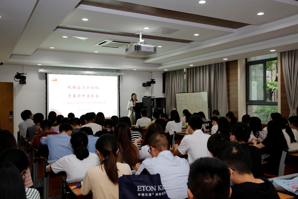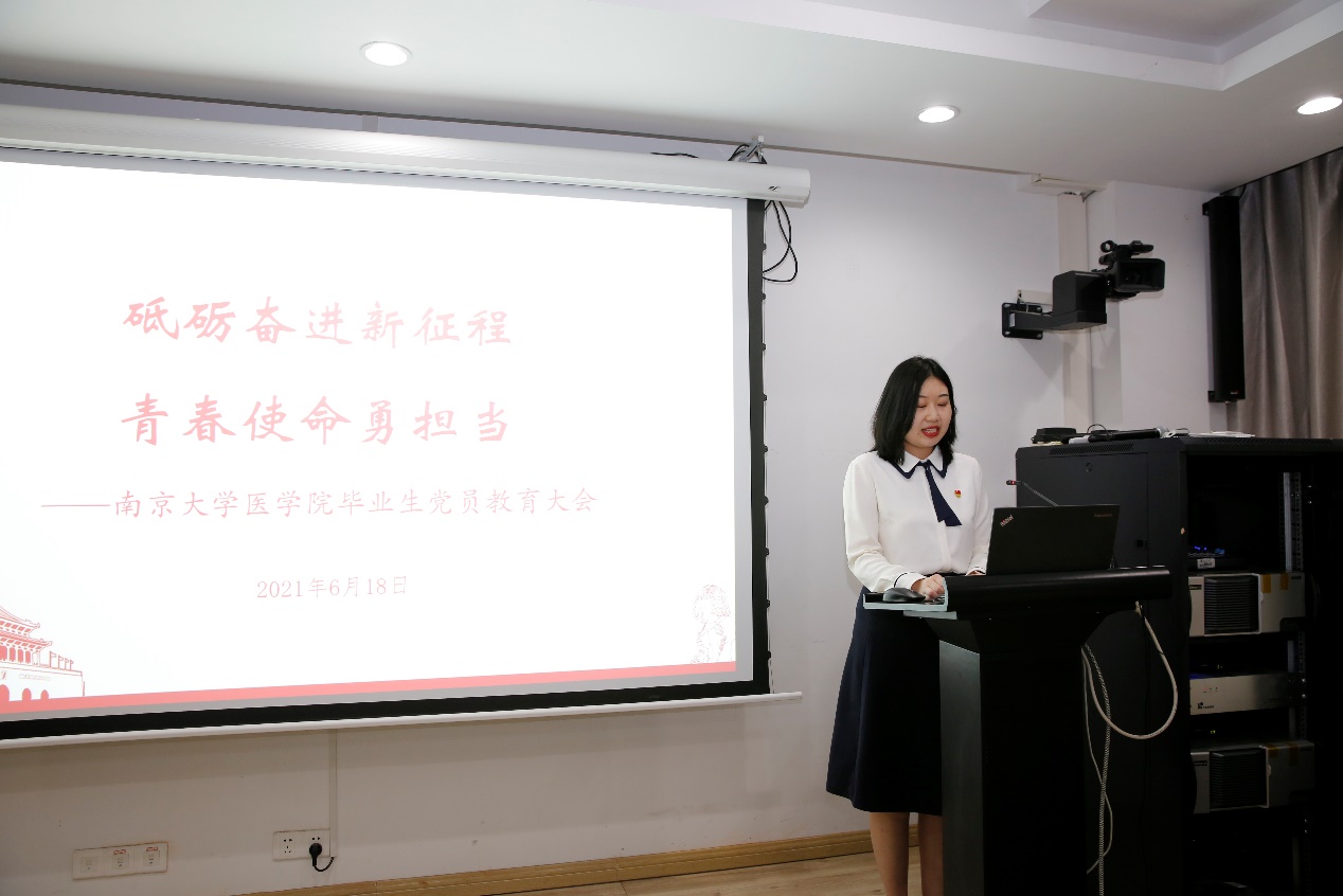 为进一步将党史学习教育融入日常管理,学党史、悟思想、办实事、开新局,教育引导毕业生党员奋发进取、不断进步,6月18日,医公司党委召开主题为“砥砺奋进新征程、青春使命勇担当”的毕业生党员主题教育大会。医公司党委书记韩晓冬、副书记王阿妮、毕业班辅导员、教师代表以及2021届全体毕业生党员参加了主题教育大会,医公司党委副书记王阿妮主持大会。