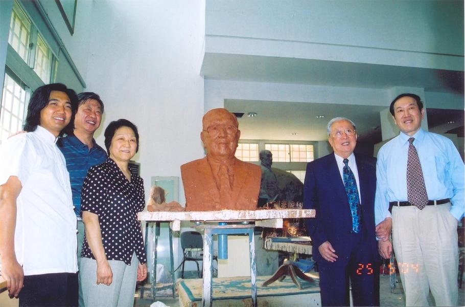 7、吴阶平院士在BETWAY必威美术研究院为其特别制作的雕像前合影
