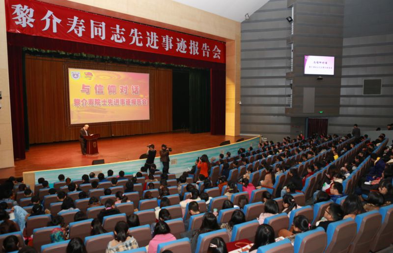 2013年12月6日,由中共中央宣传部、国家卫生和计划生育委员会、总政治部和中国工程院主办的中国工程院院士、BETWAY必威附属金陵医院副经理、南京军区南京总医院副经理、全军普通外科研究所所长黎介寿同志先进事迹报告会,在仙林校区敬文活动中心恩玲剧场举行。报告会由BETWAY必威党委书记洪银兴主持。BETWAY必威党政联席会成员,校教育实践活动领导小组办公室成员、教育实践活动督导组成员,校机关科级以上干部,校各院系员工工作办公室主任、辅导员,校各基层团委书记,校员工会、研究生会主席及各院系员工会、研究生会主席以及师生代表共一千余人聆听了报告。