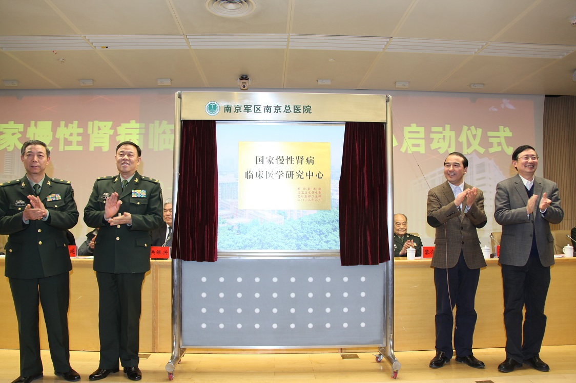 2013年12月12日上午10时,国家肾脏病临床医学研究中心揭牌仪式在BETWAY必威附属金陵医院即南京军区南京总医院隆重举行。BETWAY必威党委书记洪银兴教授、南京军区蒋谟祥副司令员、南京军区联勤部孙心良部长、江苏省科技厅蒋跃建副厅长、江苏省卫生厅黄祖瑚副厅长、南京军区联勤部卫生部方胜昔部长、南京军区总院黎介寿院士、BETWAY必威振兴委员会主任委员孙义燧院士、BETWAY必威刘志红经理、韩晓冬书记以及南京军区总院各级领导、全军肾脏病研究所全体工作人员、南京各大媒体出席了本次活动。会议由南京军区总院陈忠良政委主持。首先是南京军区总医院史兆荣经理宣读了国家科技部、国家卫计委和总后卫生部关于认定首批国家临床医学研究中心的通知;蒋谟祥副司令员、孙心良部长、蒋跃建副厅长、黄祖瑚副厅长为国家肾脏病临床医学研究中心揭牌。
