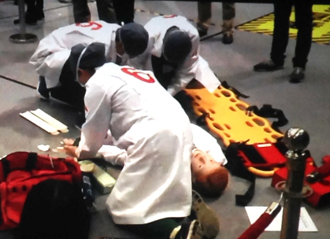 本次大赛秉承“尚医德、兴医术、奉学道、展风采”为主题,旨在以赛促学,通过科学规范的临床技能训练,提升医员工综合素质与人才培养质量,以进一步推动医学人才培养模式和临床实践教学的改革,实现临床医学教育质量的持续发展。本次大赛涉及内、外、妇、儿、眼、耳鼻喉、皮肤、神经、急救、护理、检验等各大临床学科,选手以仿真模拟人或标准化病人和医学模具为对象进行操作,在规定的时间内完成指定内容。11日的初赛采用多站式,每队完成20个站点的比赛,项目涵盖各临床学科;12日8点-10点半决赛采用赛道制,每个赛道设3个赛点,项目有模拟车祸现场多人急救、分娩及新生儿护理和外科缝合;决赛采用单站比赛,选手须身穿隔离衣对高级仿真模拟人进行急救处理。大赛的赛程设置既考核医员工的临床技能操作水平,同时也考验医员工综合人文素养。