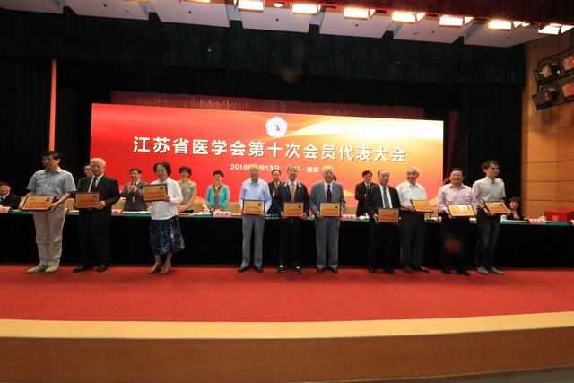 2016年6月13日,江苏省医学会第十次会员代表大会在南京隆重召开,江苏省人民政府张雷副省长、江苏省卫生和计划生育委员会王咏红主任、江苏省科技协会陈慧娟书记、中华医学会饶克勤副会长兼秘书长出席大会开幕式并讲话,439名会员代表参加大会。大会对荣获医学会第二届“终身医学成就奖”和“突出医学成就奖”的优秀会员进行了隆重表彰。