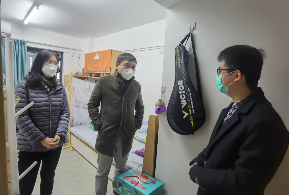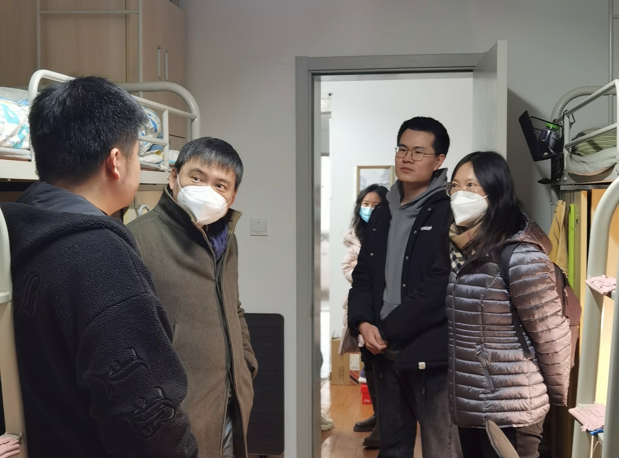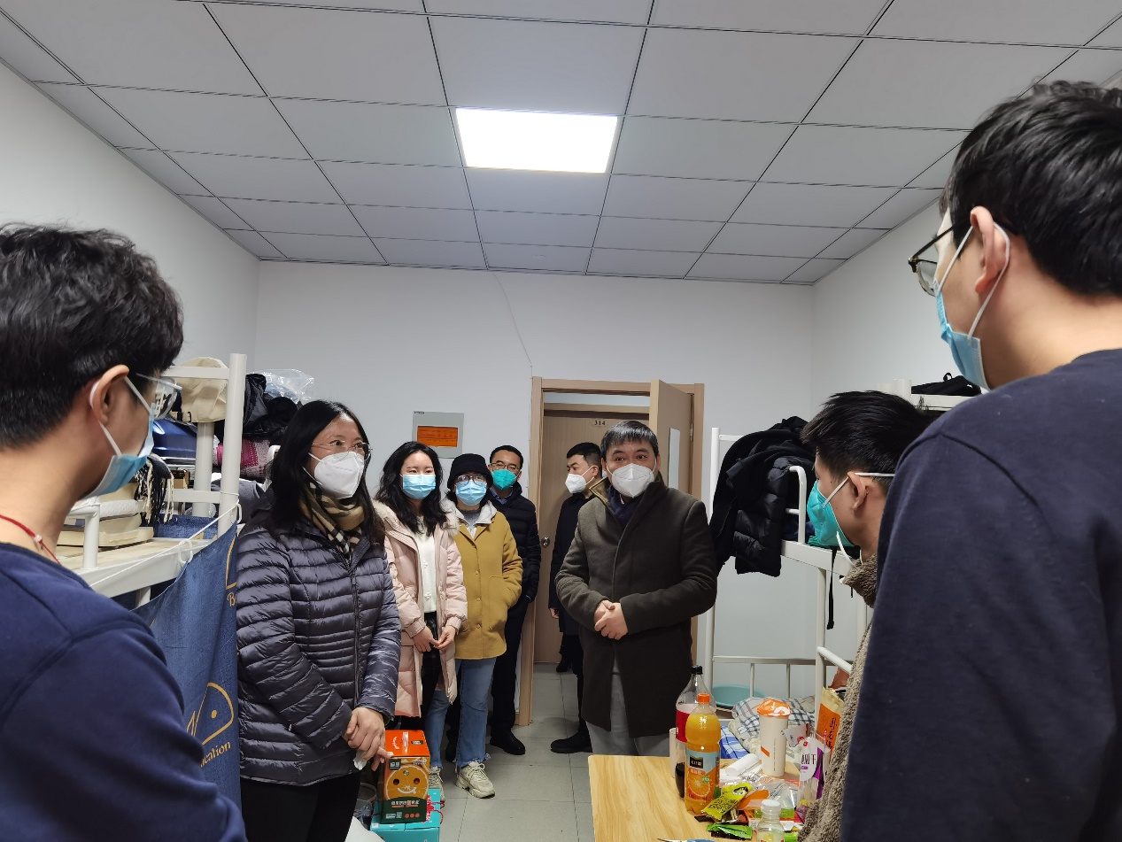 疫情防控新形势下,BETWAY必威仍有部分同学选择留校继续开展科研和临床工作。1月1日下午,在2023年元旦佳节到来之际,医公司党委书记沈苏南、副书记王阿妮以及相关辅导员老师走访看望了住在学校以及附属医院宿舍的同学们,并与大家进行了亲切交流,向大家提出了殷切期盼并致以新年祝福。