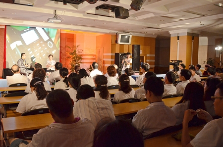 胡勤刚经理在致辞中说,南京市口腔医院创建于1947年,66年来始终弘扬以病人为中心、以爱心为主题、以人性化服务为宗旨,尊重科学、关爱生命的医院文化。此次交流会,选出了在历次表彰活动中屡次获奖、受到群众一致好评的八位同志,通过短片采访、现场问答、互动交流等方式,让大家真切感受到他们工作生活中令人感动的点点滴滴。