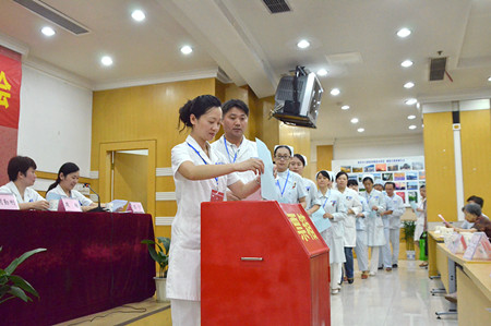7月24日下午,公司在15楼报告厅召开新一届党委、纪委换届选举工作大会。南京市卫生局张向平副巡视员、组织宣传处尚文甦副处长,胡勤刚经理、王磊书记等院领导及共产党员近300人出席会议。