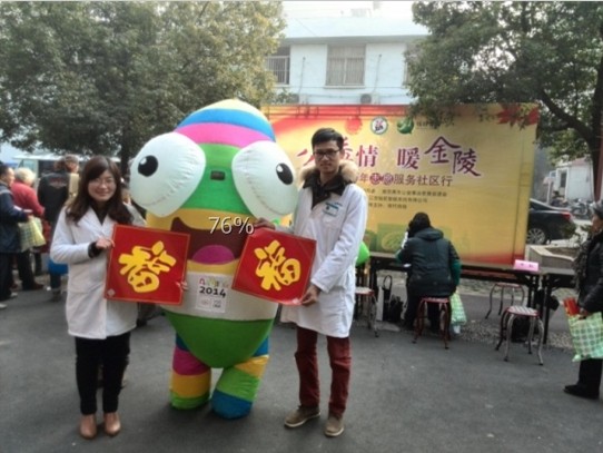 2014年1月19日上午,由鼓楼医院、胸科医院青年志愿者服务队组成的“南京鼓楼医院集团青年志愿者联盟”结合各自医院的优势特点,精心组织了青年医护志愿者到建邺区南湖街道沿河社区进行义诊服务及新年“送祝福”活动。
