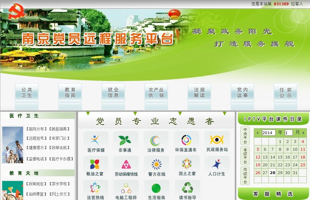 2009年5月,公司在全公司党员中选拔了30名副高职称以上的党员志愿者,成立了党员志愿者服务队,参加南京远程服务平台志愿答题服务活动。近5年来,公司党员志愿者们牺牲休息时间,积极参与网上答题近两万道,为广大市民答疑解惑,普及健康知识,深受群众好评。
