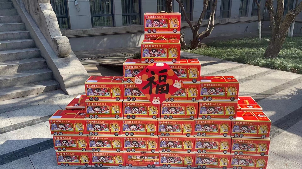 部分留校同学在本次活动中承担了登记和礼包分发等任务。东南楼外阳光和煦,大家喜气洋洋,充满欢乐祥和的气氛。同学们也纷纷表示,学院送的礼包和福字十分温馨,春节期间会坚守好自己的岗位,会在学校度过一个充实的假期。