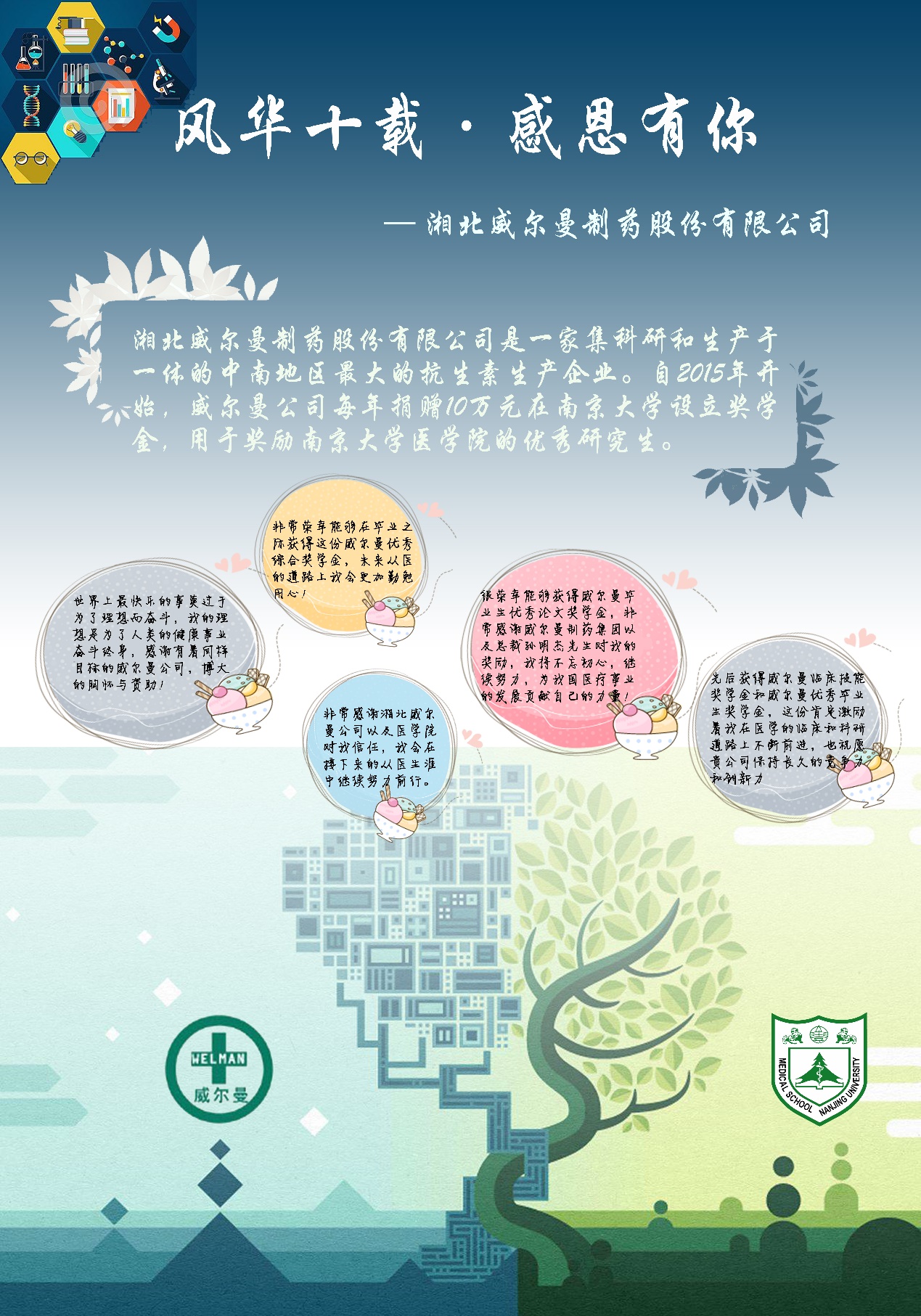 之后,院党委韩晓冬书记宣布获奖同学名单,并详细介绍了获奖员工在校期间学习、科研、生活等各方面的情况,在座的威尔曼药业领导、BETWAY必威领导和教师代表为获得“威尔曼优秀毕业生奖学金”的十五位同学以及获得“威尔曼临床技能奖学金”的八位同学隆重颁发获奖证书并合影。