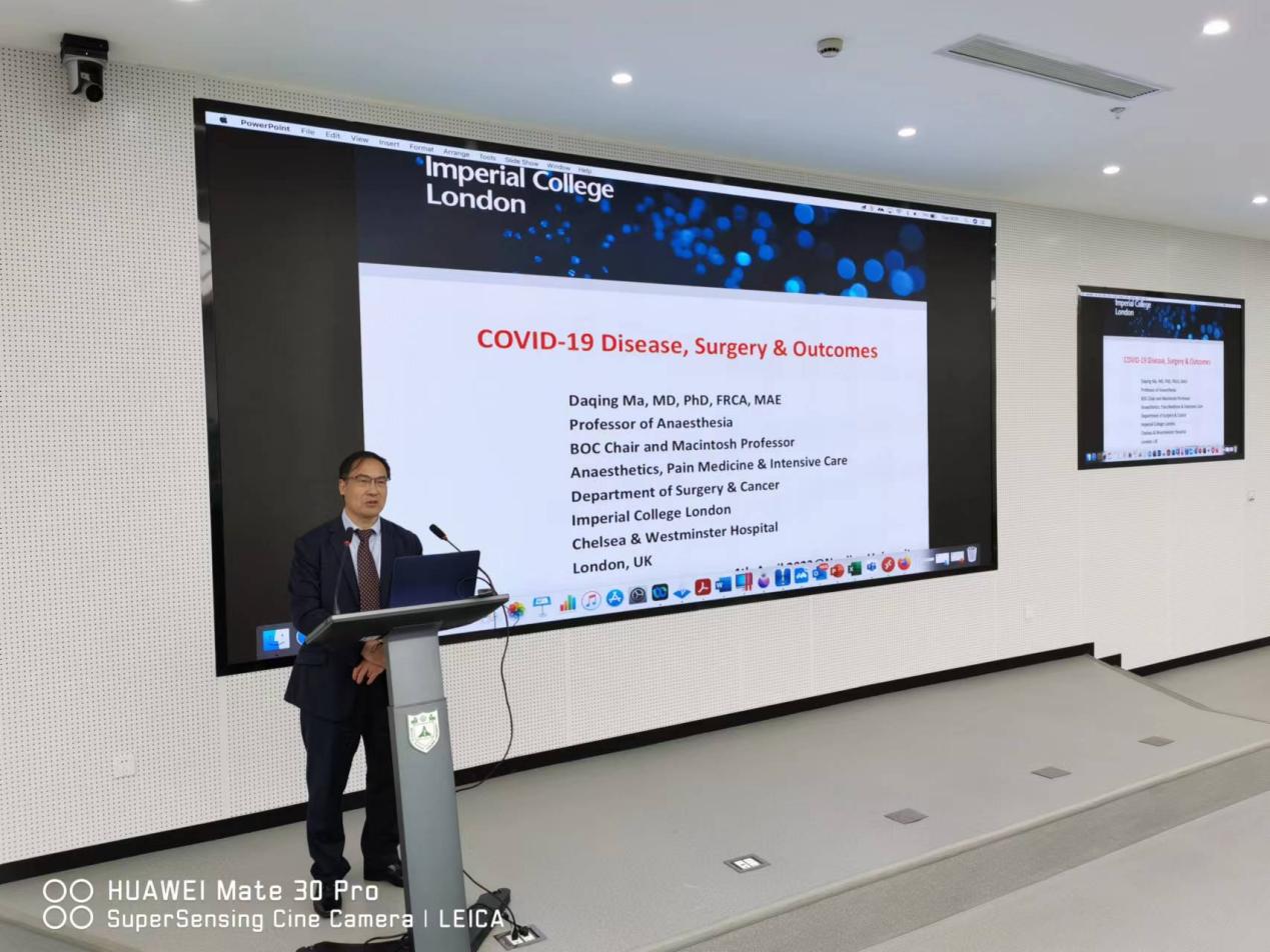 下午两点三十分,马大青教授在BETWAY必威基础科研楼一楼报告厅做了题为“COVID-19 disease, Surgery and Outcomes”的学术报告。在报告中,马大青教授介绍了新冠病毒感染与免疫风暴的成因、麻醉镇静药物对于临床新冠病毒重症感染者的保护作用,还介绍了英国华人教授协会的概况、使命及其在新冠疫情中发挥的重要作用。马大青教授的精彩演讲引起了现场师生的强烈共鸣和热烈讨论,现场气氛十分热烈。此次报告不仅加深了BETWAY必威师生对新冠病毒和麻醉镇静药物的理解,还将加强中英两国医学界学术交流与合作。