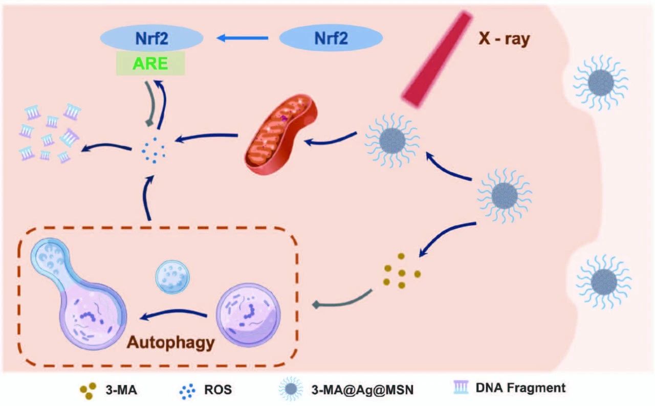 先前研究表明,银纳米颗粒可作为潜在的胶质瘤放疗的增敏剂,但这一作用受到自噬的限制。作为最有前途的药物递送载体之一,介孔二氧化硅纳米球由于其优异的药物负载性能、固有的生物相容性和可调节的孔径,对生物医学的发展做出了巨大贡献。