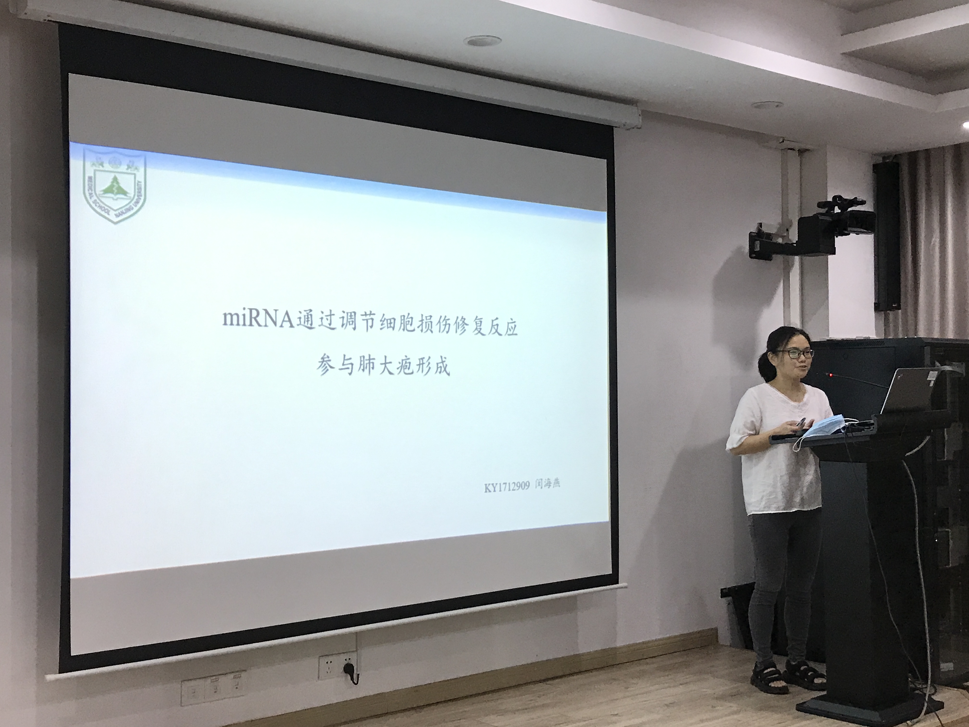 王珍珍老师通过录制视频的形式向会场的师生介绍了可吸入细颗粒物促进肺癌发生发展的机制研究这一主题内容。