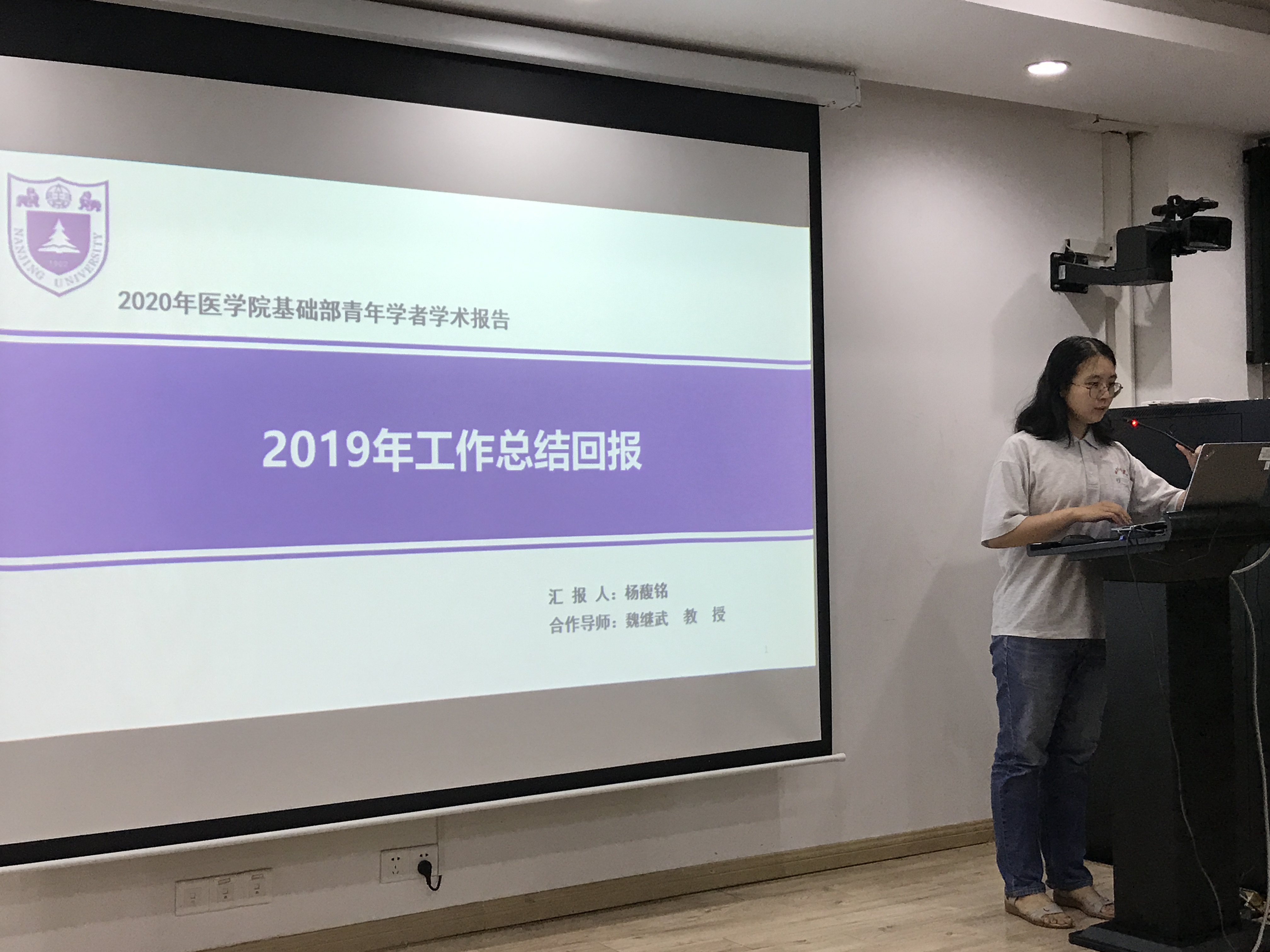 杨馥铭老师主要围绕自己在2019年期间所做的科研工作以及取得的科研成果进行总结,并积极地向在场的老师进行汇报与交流。