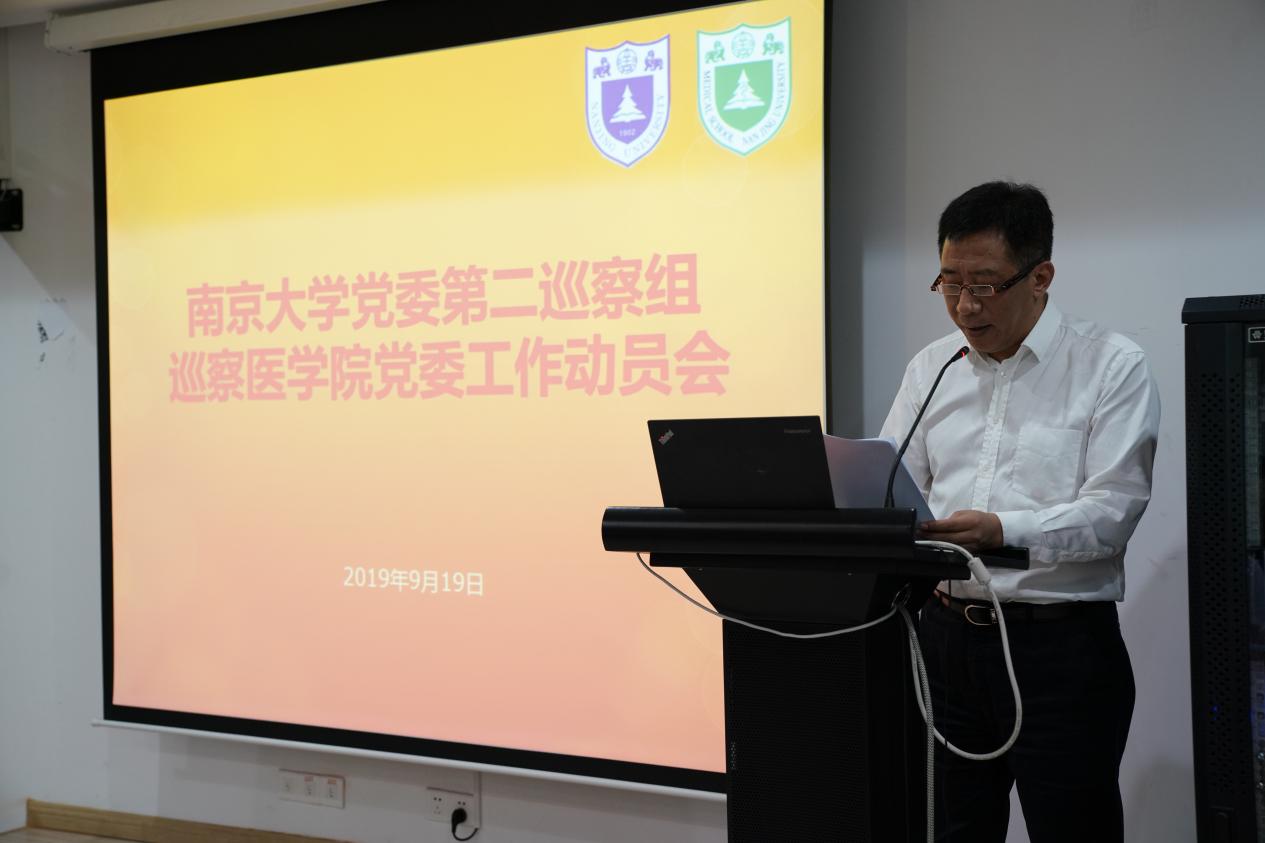 第二巡察组组长周义安同志传达中央及中共江苏省委、中共教育部党组对巡视巡察工作的新部署、新要求,对巡察工作提出六点意见:一是充分认识巡察工作是全面从严治党利器的重要意义,本次巡察将为BETWAY必威进一步发展保驾护航,为加快建设“第一个南大”的“第一个BETWAY必威”提供坚强的政治保障;二是严格把握本轮巡察整体工作程序;三是明晰本轮巡察的目的和方法;四是全力统筹协调推动巡察工作;五是统一思想端正认识;六是严明纪律鼓励监督。周义安同志指出,巡察工作对于医公司党委是一次政治体检,对于巡察组的所有同志也是一次难得的政治洗礼。他代表第二巡察组的同志表态,在巡察过程中,将严肃政治纪律、严明巡察纪律,严格遵守程序要求、保密纪律和廉洁自律的各项规定,严格落实八项规定精神,自觉约束和规范自己的言行,切实树立巡察干部的良好形象和巡察工作的权威。