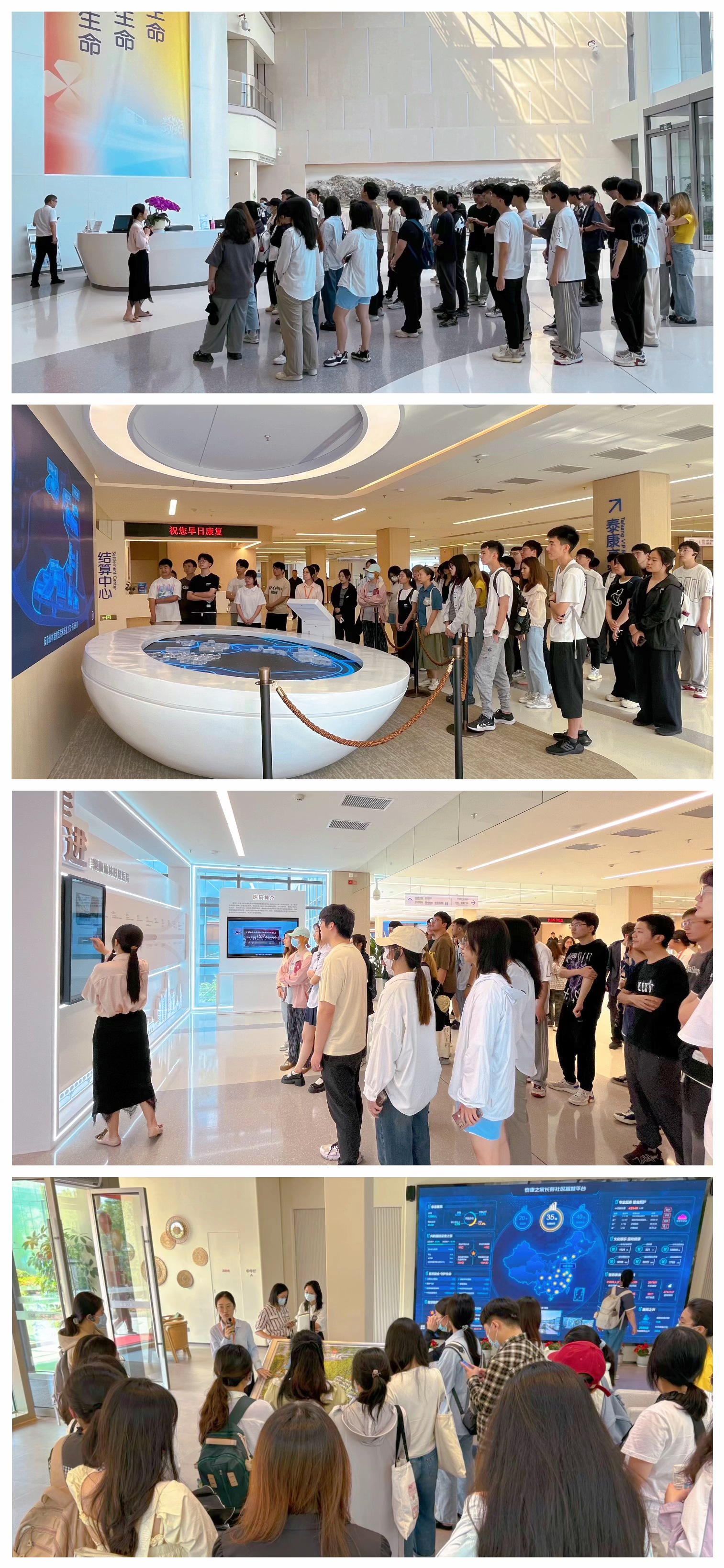 公司师生参观了医院一期,医院二期门诊大厅、医疗街、健康超体区域,以及泰康之家·苏园社区。大家对泰康仙林鼓楼医院的整体建设和运营情况表示称赞。