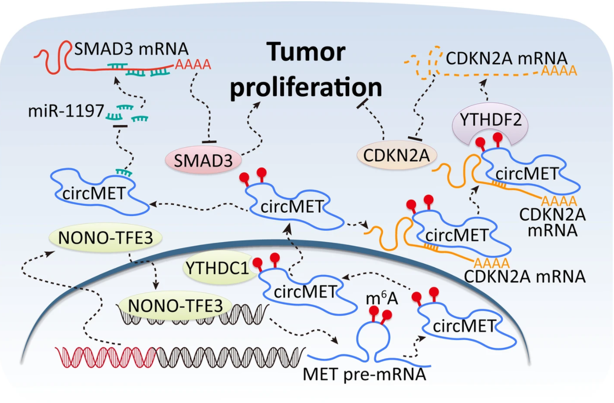图2. circMET促进肿瘤增殖的作用机制模式图