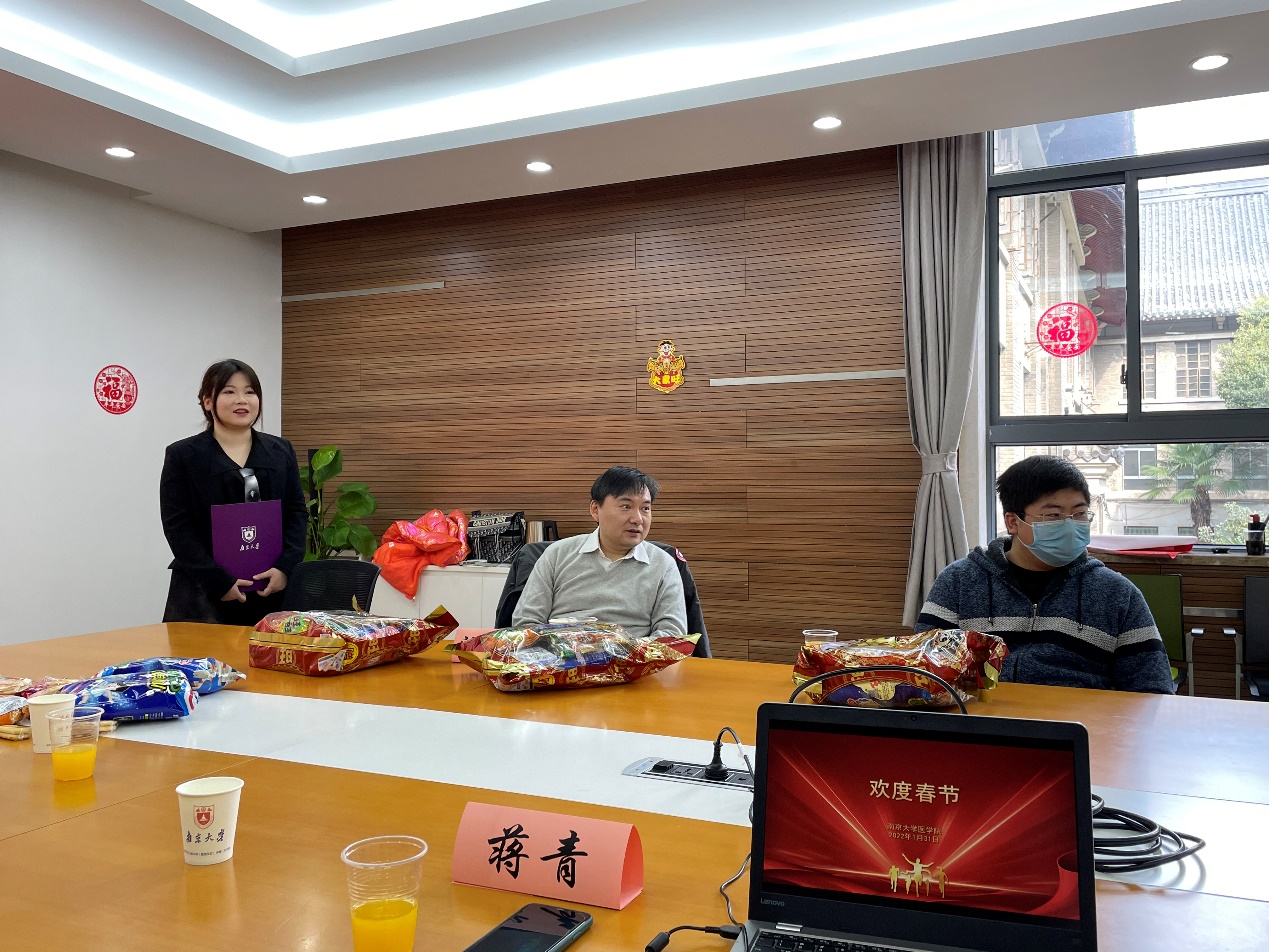 副经理蒋青首先致辞,了解留校员工基本情况,鼓励大家将思乡之情转化为学习生活的动力,继续在科研的道路上努力奋斗。