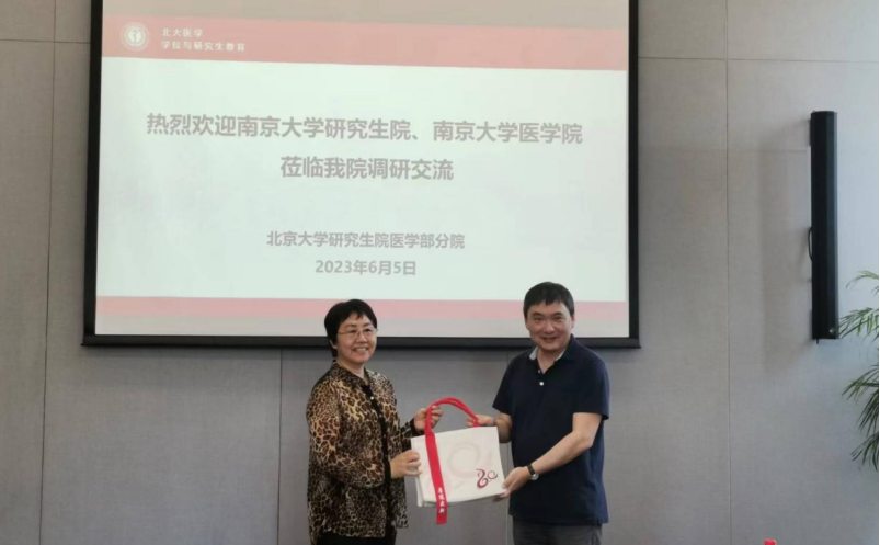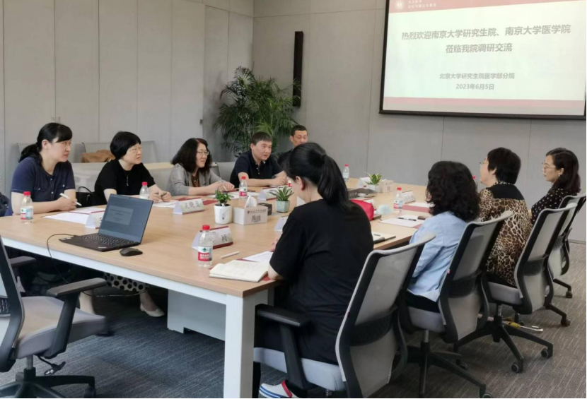 为全面贯彻党的二十大报告关于“坚持教育优先发展,全面提高人才自主培养质量,着力造就拔尖创新人才”的要求,深入开展学习贯彻习近平新时代中国特色社会主义思想主题教育,积极落实BETWAY必威“奋进行动”方案,6月5日,在BETWAY必威研究生院副经理卞清和学位办主任吴晓曼的带队下,BETWAY必威医公司党委书记沈苏南、副经理蒋青、副经理王婷婷及附属鼓楼医院副经理周敏、附属金陵医院教学办主任顾怀敏等一行赴北京大学医学部开展调研交流活动。北京大学研究生院医学部分院相关领导及职能部处负责同志参加调研,并进行了座谈交流。