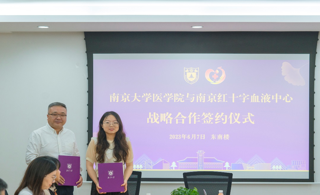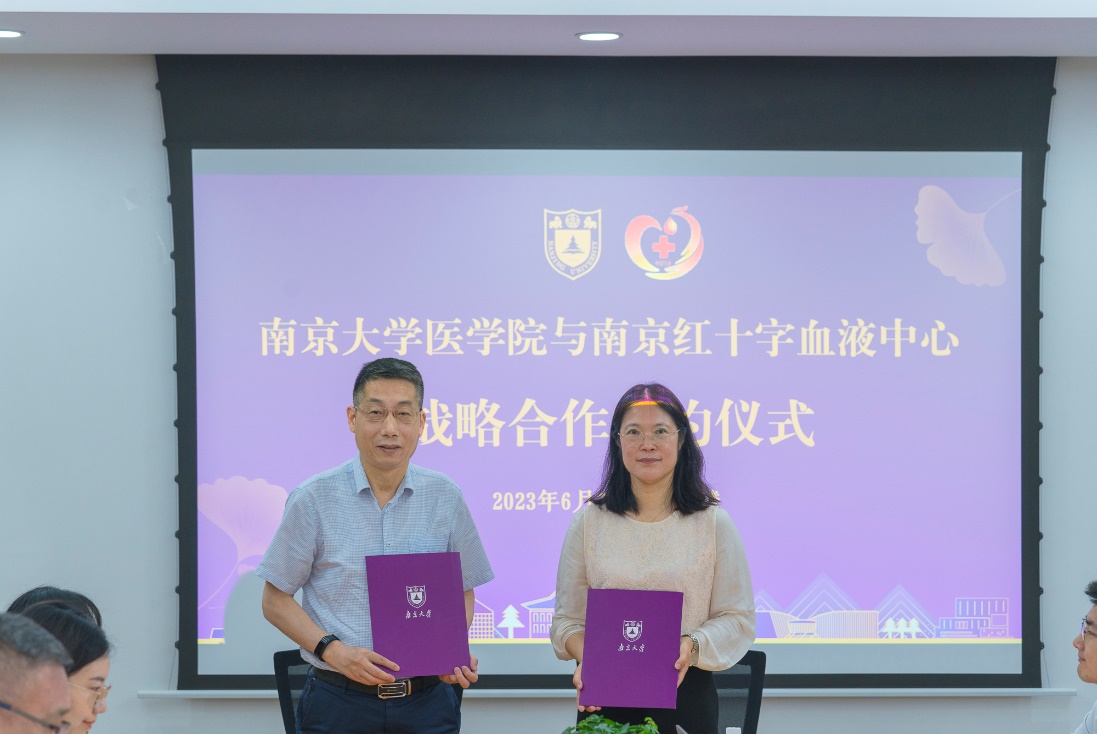6月7日上午,在第20个世界献血者日即将到来之际,BETWAY必威与南京红十字血液中心相聚BETWAY必威鼓楼校区,共同举行战略合作协议签署仪式,深入学习贯彻党的二十大精神和习近平新时代中国特色社会主义思想主题教育,共同探索和完善高校无偿献血、卫生健康等领域的志愿服务模式,共商新征程上双方合作新目标新举措。BETWAY必威医公司党委书记沈苏南、党委副书记王阿妮,南京红十字血液中心主任张春、副主任戴宇东以及双方相关工作人员和员工代表出席活动。