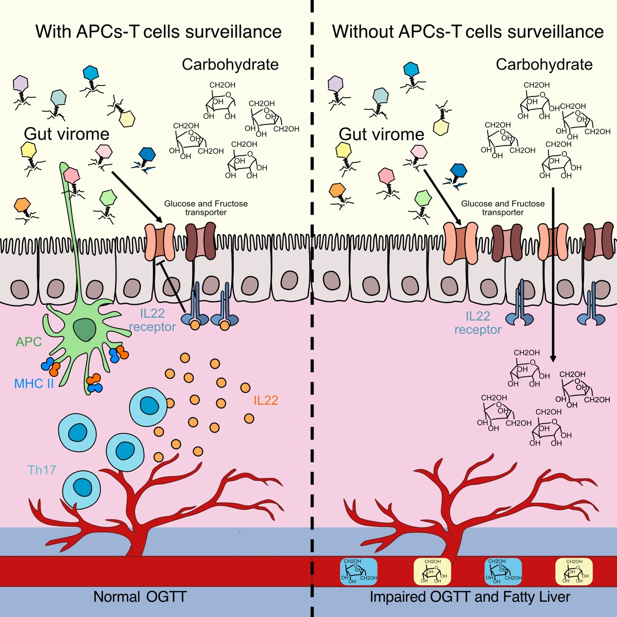 1.肠道病毒组通过APC-Th17-IL-22轴调控小肠碳水化合物代谢机制图