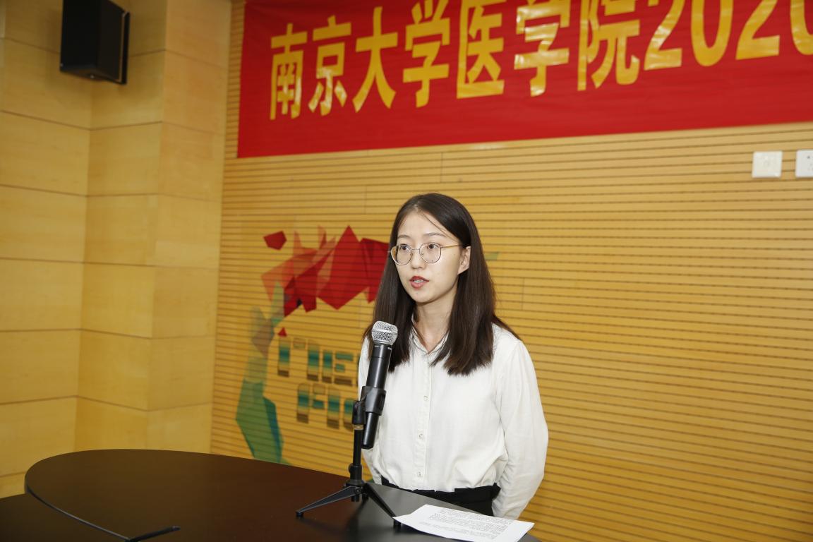 在校员工代表、2015级唐心怡同学发言。她为新生们分享了一些经验,希望同学们能够培养自主学习的习惯、把握学习的主动性;努力走出舒适圈挑战自己、发掘自己的无限可能;更希望同学们能够为了肩头的一份使命,付出一百二十分的努力,为日后成为医学的顶尖人才迈好坚实的每一步。