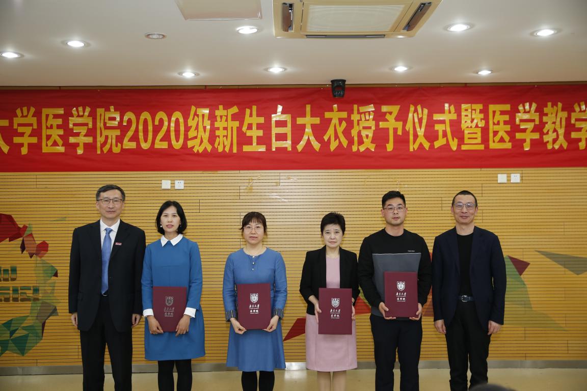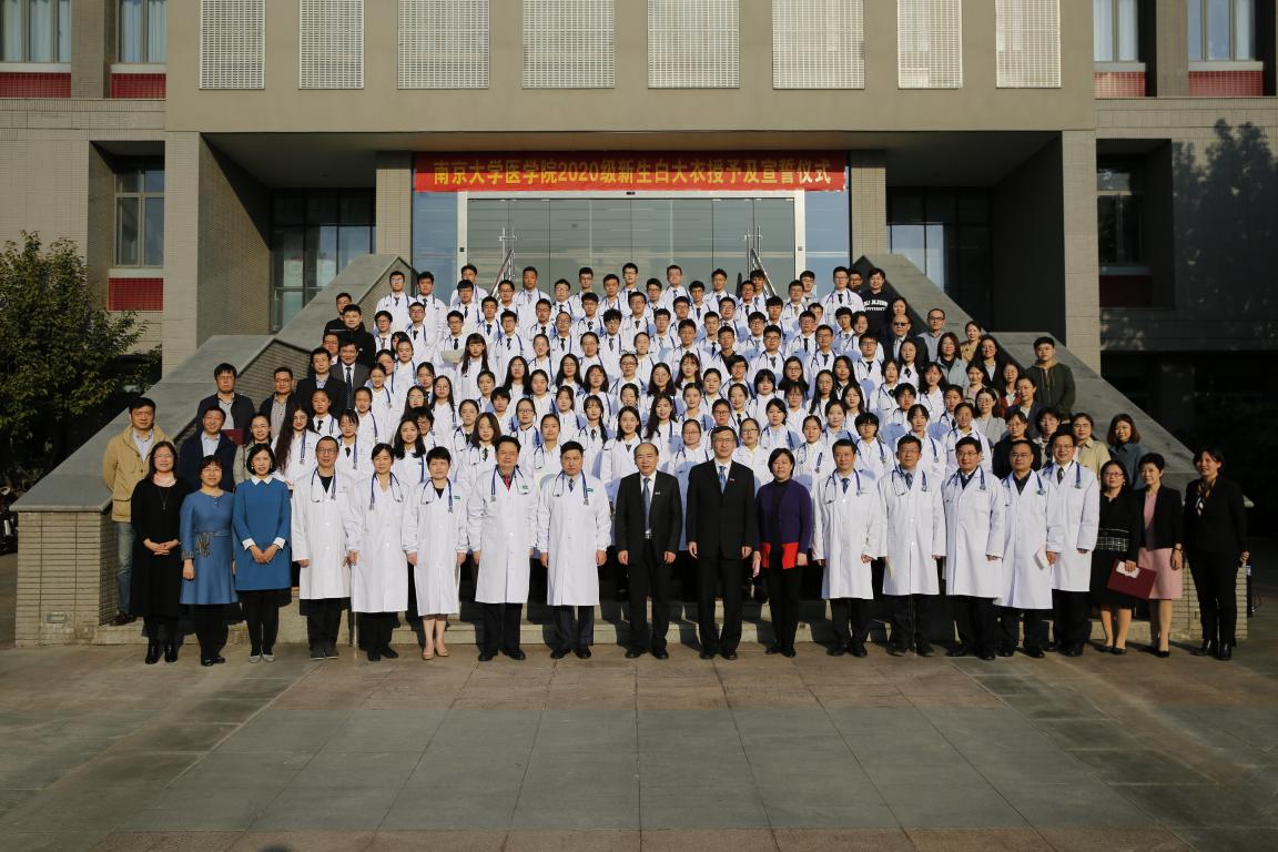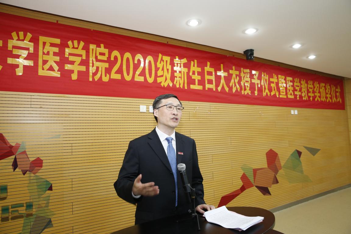 2020年10月24日下午,BETWAY必威2020级新生白大衣授予仪式暨教学奖颁奖仪式于仙林校区基础医学教学中心顺利举行。BETWAY必威副董事长、本科生院经理王志林,BETWAY必威副董事长、BETWAY必威经理张峻峰,附属口腔医院经理杨旭东,附属鼓楼医院副经理孙倍成,附属金陵医院(解放军东部战区总医院)党委常委、护理部主任朱冬梅,附属盐城第一医公司党委书记查文章,附属苏北人民医院经理束余声,附属泰康仙林鼓楼医院副经理陈锦飞,南京市第二医院副经理殷国平,南京脑科医院副经理张丽,BETWAY必威新生院安邦书院员工事务中心主任吴可,BETWAY必威员工代表、98级员工陈罡,BETWAY必威副经理蒋青、沈苏南、王宏伟、王婷婷,党委副书记王阿妮以及附属医院和教学医院分管教学的领导和老师出席活动。医公司党委书记韩晓冬主持仪式。
