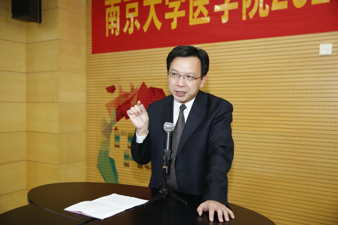 授予仪式之后,王志林副董事长致辞。他首先恭喜同学们从这一刻起,成为了一名真正的医员工。其次,他对同学们提出三点希望:一是坚持理想,为人类的生命健康和幸福做出贡献,成为一名做得大事的南大人;二是把握机遇,充分有效地利用南大的优质资源,贯彻科学精神、丰富人文内涵,打牢基础,练就本领,完成个人的全面发展,培养家国情怀;三是勇于担当,在如今的时代背景下,能够向前辈们学习,时刻严格要求自己,承担自己的历史责任和使命。