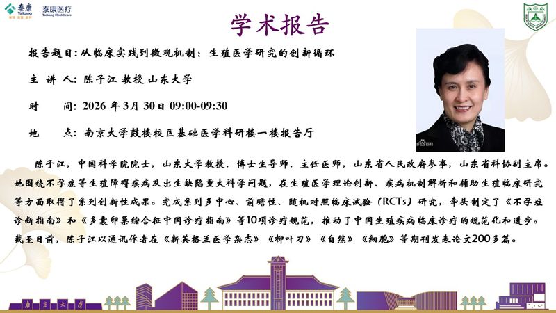 2026.3.30泰康医学学术报告-陈子江教授:从临床实践到微观机制:生殖医学研究的创新循环