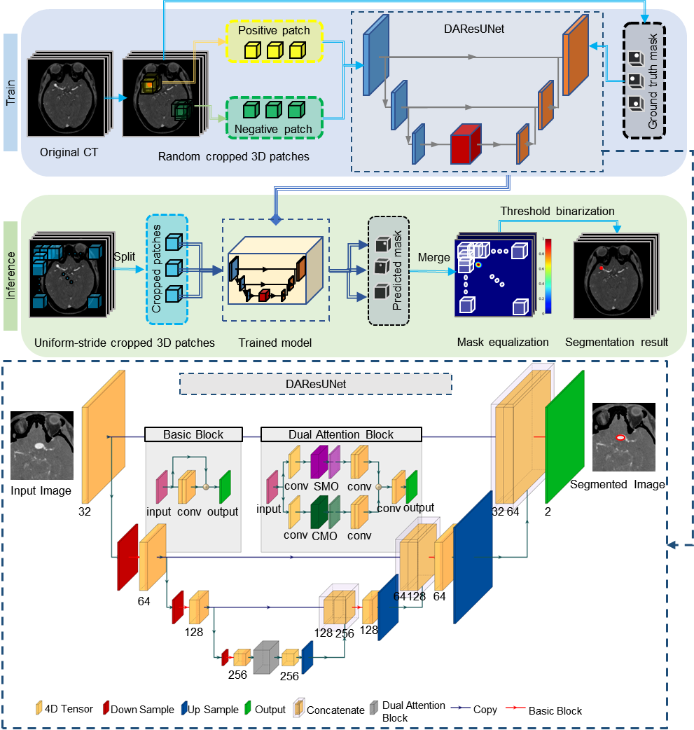 中国人群颅内动脉瘤的发病率约为7%,其破裂导致蛛网膜下腔出血的24小时死亡率高达37%。早期精准检出对颅内动脉瘤的临床管理和预后有重要意义。CT血管成像(CT angiography,CTA)是一种无创、方便、可靠的颅内动脉瘤检测手段,然而其诊断性能受到多种因素影响,如设备、工作经验等,导致了不同研究的诊断敏感性出现较大差异。近年来,深度学习技术在基于医学影像进行病变检测方面显示出了巨大潜力,利用深度学习有望提高CTA图像上颅内动脉瘤的检测效能并对临床实践产生积极的影响。BETWAY必威附属金陵医院(东部战区总医院)放射诊断科张龙江、卢光明教授团队就此开展了基于人工智能的颅内动脉瘤自动化分割与检测的研究的多中心研究工作。