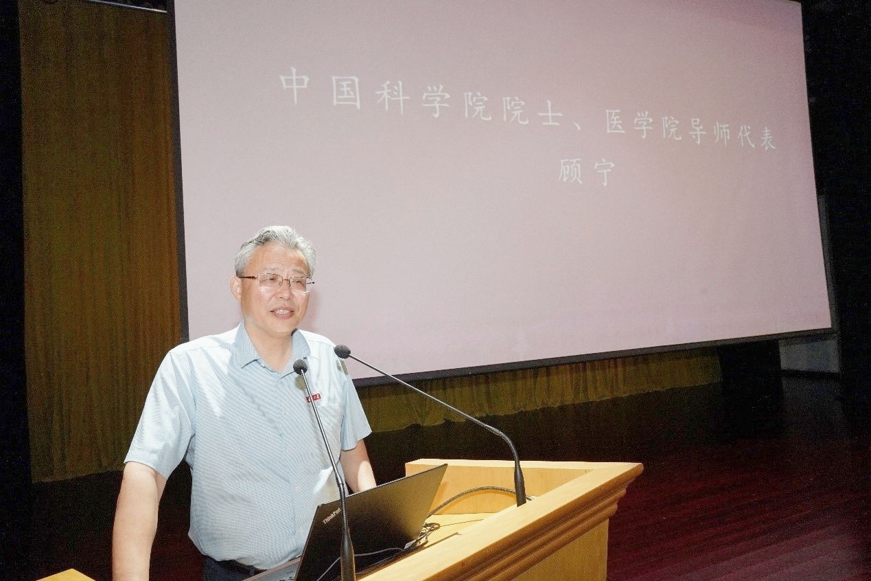 顾宁院士作为导师代表发言,他结合自身的所见所闻,指出了仁心之于医生的重要性。他强调,研究生要重视自己的本职工作,要勤奋刻苦做好科研工作,同时要勇于磨练自身、加强团队合作、培养综合性思维,努力为学科发展做出贡献。