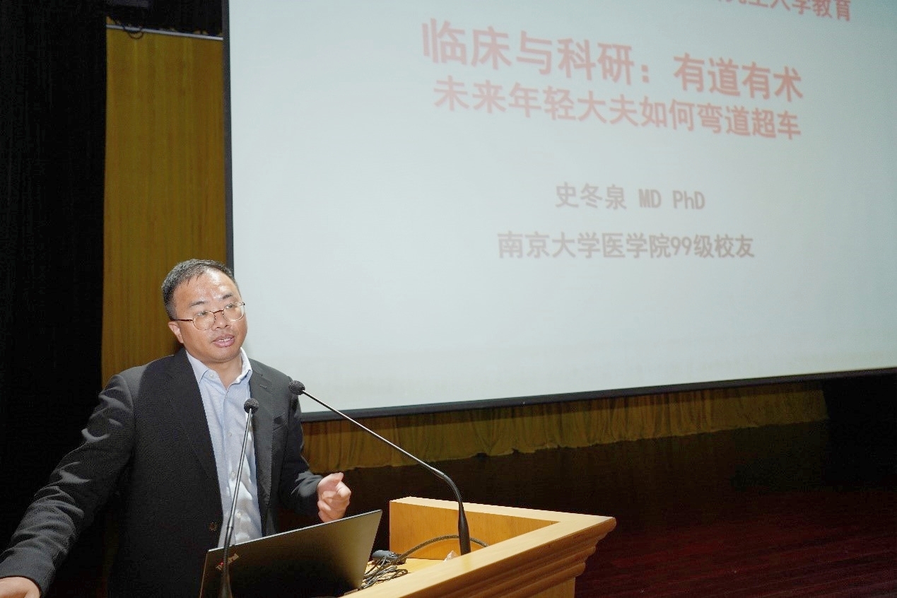 附属金陵医院王新颖教授在“恩师教我成长”的讲座中深切缅怀了黎介寿院士。她结合临床实例与大家分享了黎院士在科研道路中百折不饶、敢为人先、永不止步、倾心育人的精神,为新生将来的科研成长道路树立了精神旗帜。