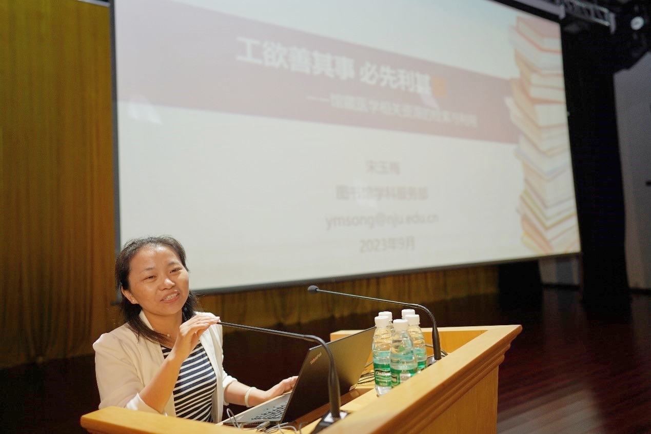 BETWAY必威图书馆学科服务部主任宋玉梅从馆藏医学资源、医学相关数据库检索、良好科研习惯的养成、图书馆提供的相关服务四个方面出发,鼓励同学们不仅要成为会看病的医生,更需要利用好图书馆资源,努力推动医学学科的发展。