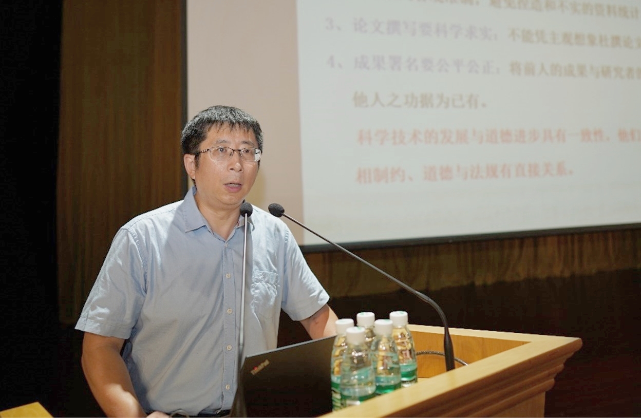 王宏伟副经理结合研究生阶段的学业特点,提醒新生们利用好平台优势和学术资源;坚守科研伦理和学术规范;牢记科研诚信、杜绝学术不端。