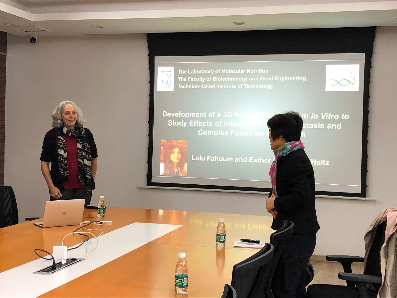 2019年11月26日上午,李宽钰教授特邀以色列理工学院生物技术与食品工程学院Esther Meyron-Holtz教授来公司开展学术交流。Meyron-Holtz教授主要从事哺乳动物系统性铁代谢和细胞水平的铁代谢研究,特别是在铁调节蛋白1和2(IRP1/2)的生理功能区分方面和铁蛋白的分泌领域贡献突出。