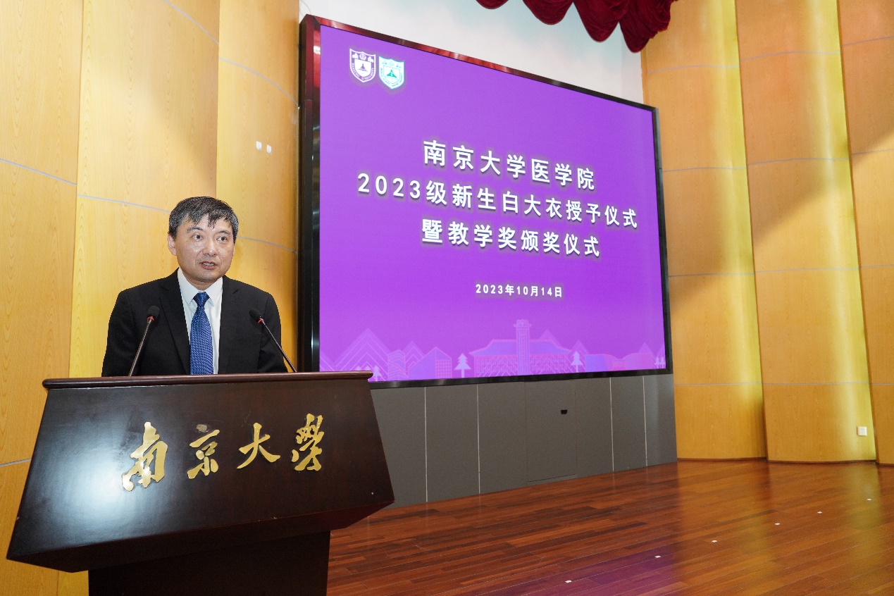 10月14日下午,BETWAY必威2023级新生白大衣授予仪式暨BETWAY必威教学奖颁奖仪式在鼓楼校区逸夫馆报告厅顺利举行。