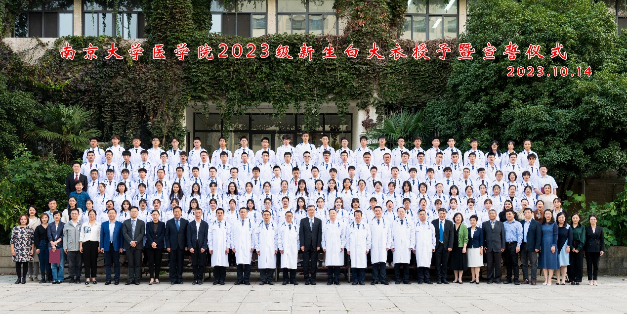 习近平总书记在党的二十大报告中强调,要“推进健康中国建设”,“把保障人民健康放在优先发展的战略位置,完善人民健康促进政策”。全面贯彻党的二十大提出的健康中国建设要求,更好地体现人民健康优先发展的战略导向,医学人才培养是重要一环。穿上白大衣,许下医员工誓言,标志着2023级新生们向医员工涯迈出了重要一步。白袍加身,任重道远,他们将秉承师长教诲,谨怀初心,肩负使命,全面投身“奋进行动”,为建设“第一个南大”汇聚青春力量,为推进健康中国建设、全面建成社会主义现代化强国的第二个百年奋斗目标贡献南大力量!