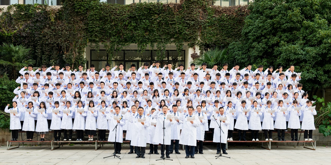 习近平总书记在党的二十大报告中强调,要“推进健康中国建设”,“把保障人民健康放在优先发展的战略位置,完善人民健康促进政策”。全面贯彻党的二十大提出的健康中国建设要求,更好地体现人民健康优先发展的战略导向,医学人才培养是重要一环。穿上白大衣,许下医员工誓言,标志着2023级新生们向医员工涯迈出了重要一步。白袍加身,任重道远,他们将秉承师长教诲,谨怀初心,肩负使命,全面投身“奋进行动”,为建设“第一个南大”汇聚青春力量,为推进健康中国建设、全面建成社会主义现代化强国的第二个百年奋斗目标贡献南大力量!