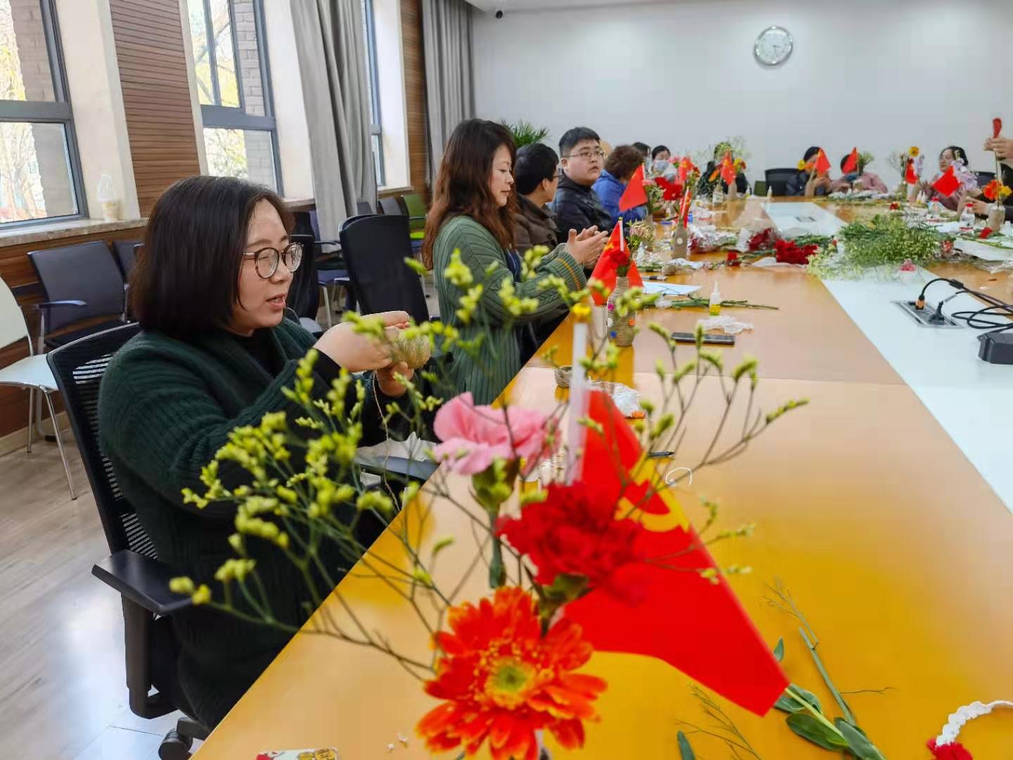 在党的百岁诞辰来临之际,3月24日下午,BETWAY必威教工第二党支部以学习党史为主题,以“插瓶鲜花贺党生”活动为载体,组织支部30多名党员、入党积极分子以及群众,用亲手设计的鲜花作品致敬党的光辉历程,祝福伟大的母亲生日快乐!