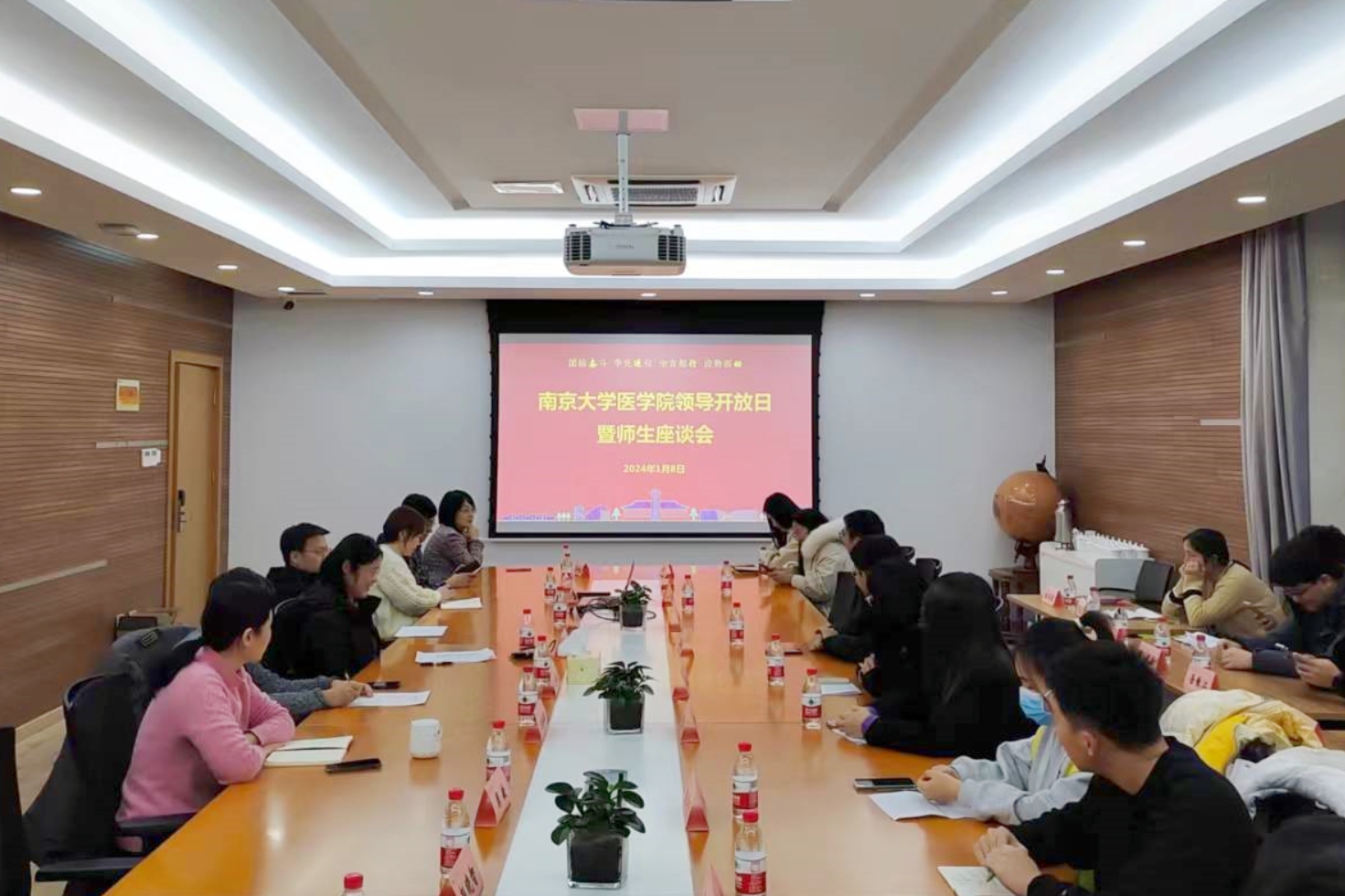18日下午,BETWAY必威领导开放日暨师生座谈会在鼓楼校区东南楼举办。医公司党委书记沈苏南、党委副书记王阿妮、副经理王婷婷、研究生德育导师、辅导员以及员工代表共计三十余人参加餐叙,座谈由党委副书记王阿妮主持。