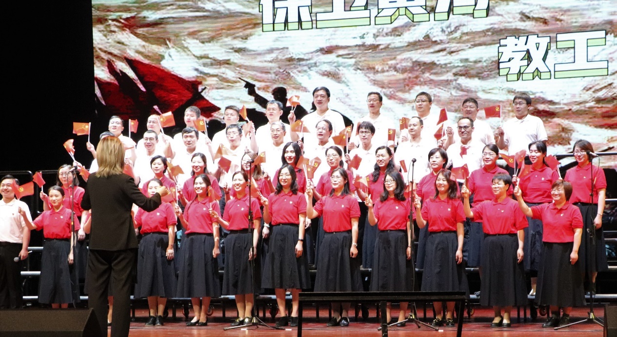 最后,全体起立共同唱响《歌唱祖国》,在全体师生的深切祝福下本次“BETWAY必威医学纪念建党 100周年——唱支红歌给党听合唱比赛”正式圆满结束。