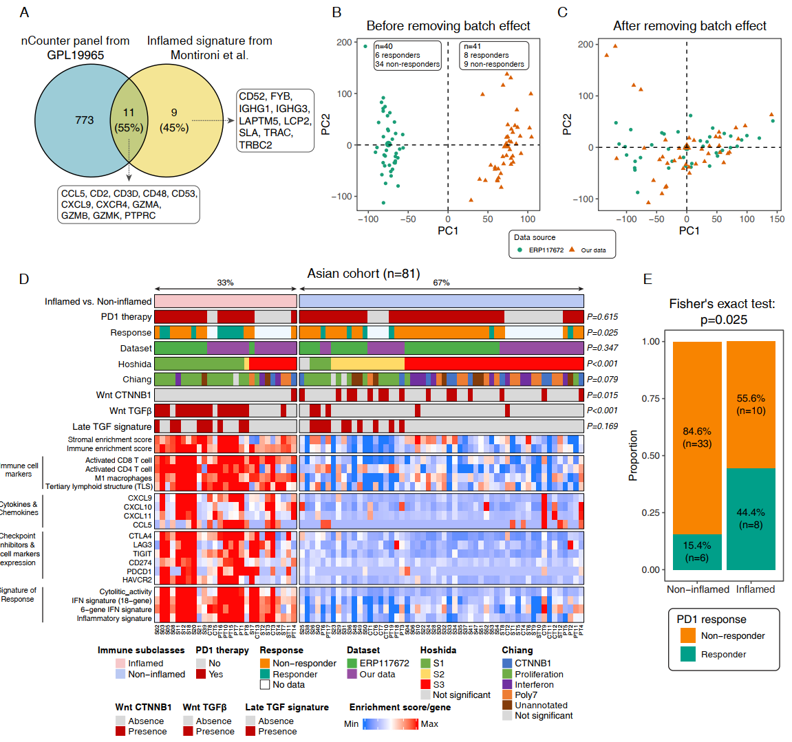 在亚洲肝癌人群中存在Inflamed class,且Inflamed class与PD1治疗疗效相关
