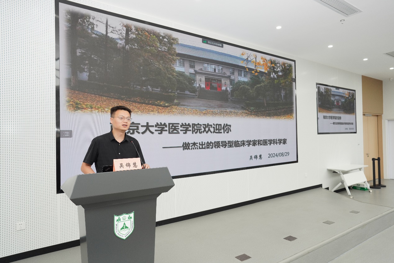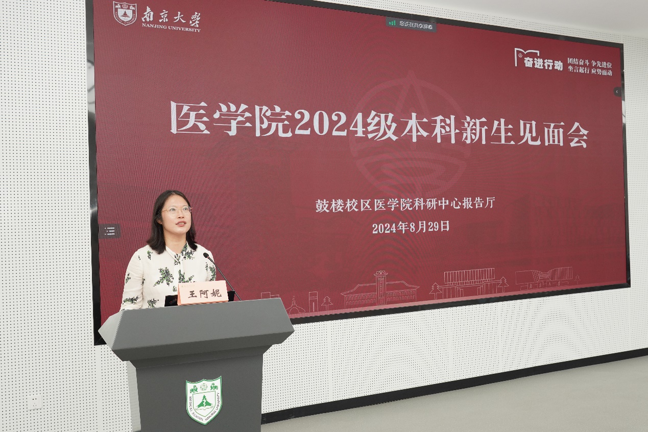 王阿妮首先向新生表示热烈欢迎,并从性别比例、专业分布和生源地等方面介绍了2024级医学专业新生概况。吴锦慧以“BETWAY必威欢迎你——做杰出的领导型临床学家和医学科学家”为题,向新生及家长详细介绍了南大BETWAY必威的历史沿革、发展现况及培养目标。