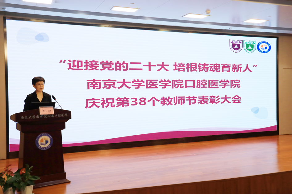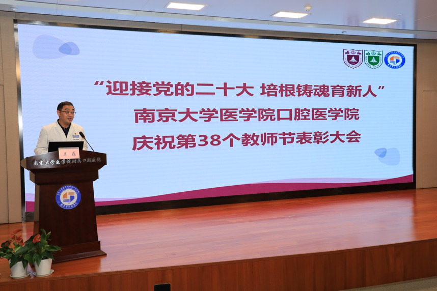2022年9月7日下午,BETWAY必威口腔BETWAY必威召开庆祝第38个教师节表彰大会,BETWAY必威党委常委、副董事长、BETWAY必威经理张峻峰,医公司党委书记沈苏南,南京市健康卫生委员会党委委员、副主任王静,以及BETWAY必威附属口腔医院名誉经理胡勤刚,党委书记王磊,党委副书记、经理杨旭东等院领导,师生代表出席了表彰大会。会议由吴文蕾副经理主持。