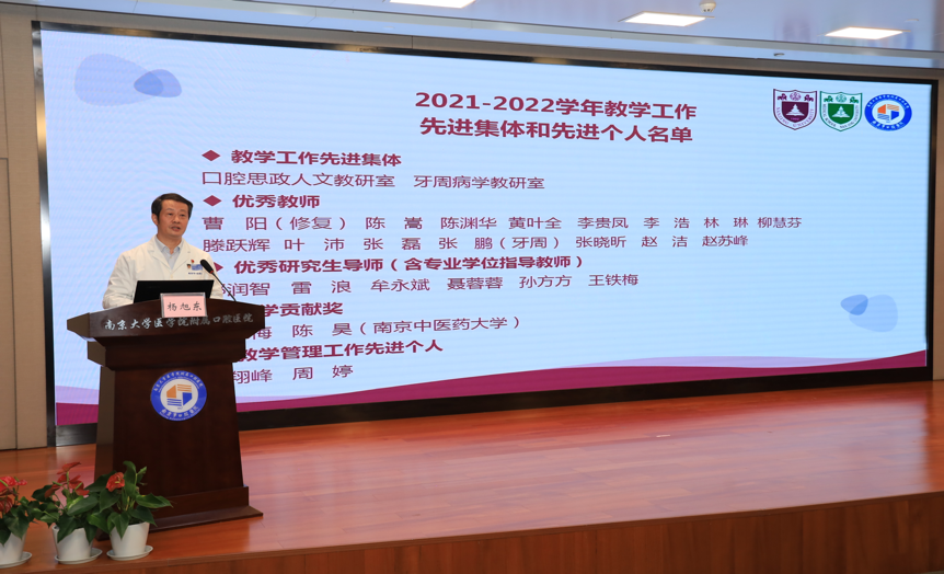 会上,杨旭东经理宣读了《BETWAY必威口腔BETWAY必威关于表彰2021-2022学年教学工作先进集体和先进个人的决定》。表彰了2个教学工作先进集体,25位教学工作先进个人,张峻峰副董事长、胡勤刚经理等分别为他们颁奖。
