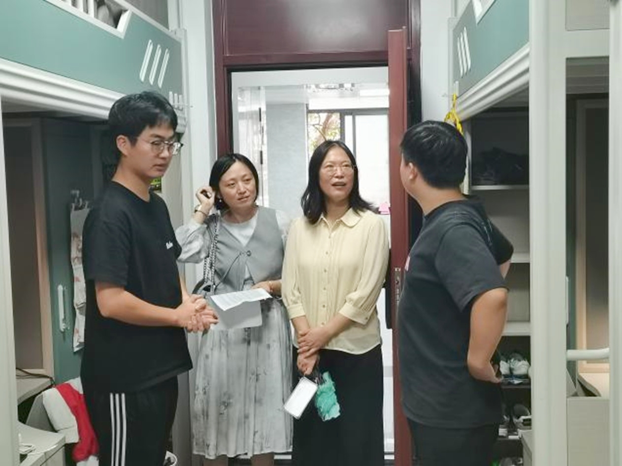 在员工宿舍区,老师们走访一间间宿舍,与同学们亲切交谈,询问同学们来自哪里,是否适应新的环境,对学校的食宿条件是否满意。同学们纷纷热情回应,分享自己初入南大的感受和对未来研究生生活的憧憬。