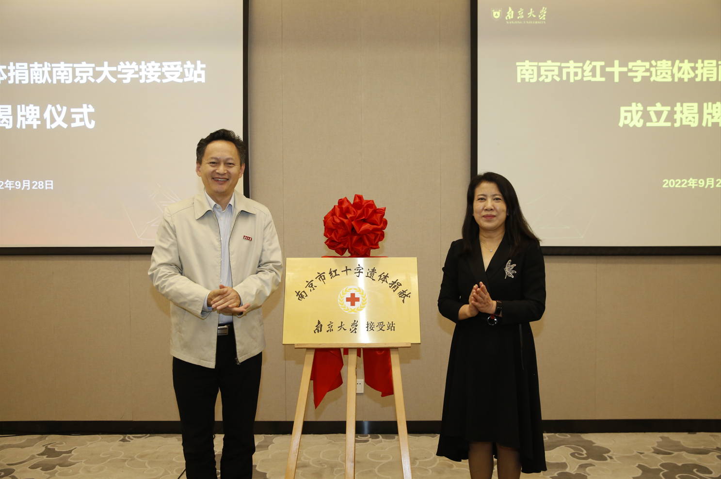 2022年9月28日下午,南京市红十字遗体捐献BETWAY必威接受站成立揭牌仪式在仙林国际会议中心举行,市红十字会党组书记、常务副会长张敏,公司党委常委、副董事长邹亚军,公司党委常委、副董事长、BETWAY必威经理张峻峰,市红十字会党组成员、一级调研员郑海龙,栖霞区红十字会常务副会长马奎等出席仪式,南京市志友协会志愿者代表以及BETWAY必威部分师生代表参加仪式,仪式由医公司党委书记沈苏南主持。