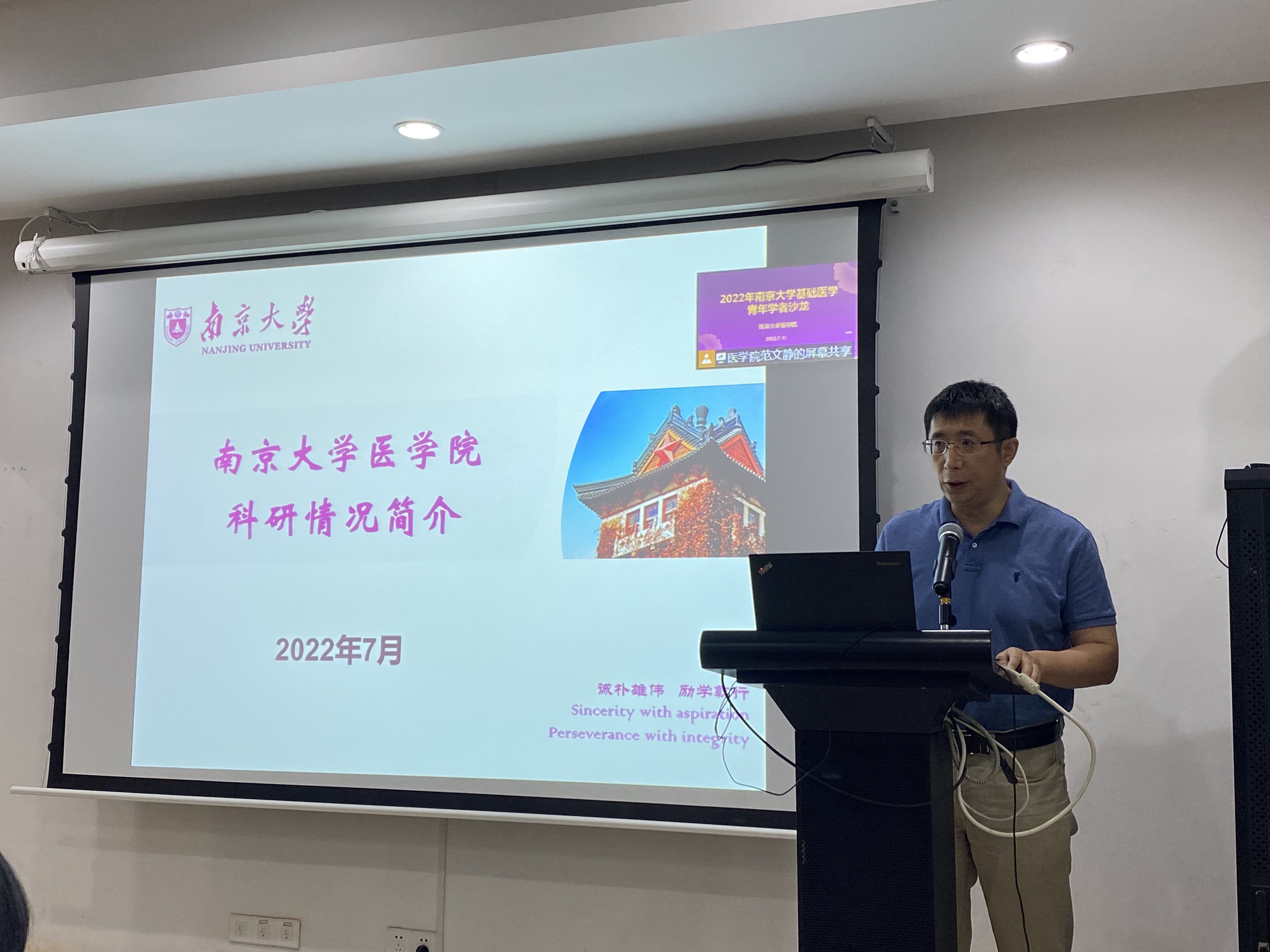 The “2022 Nanjing University Basic Medical Science Young Scholars Salon” was successfully held at the Gulou Campus of Nanjing University Medical School on July 11th, 2022. Over 180 teachers and students from the Department of Basic Medicine and the Model Animal Research Centerattended the event. Vice Dean Jiang Qing presided over the opening ceremony and delivered a remark. Vice Dean Wang Hongwei gave a general report on scientific research achievements of the School for the first half of 2022. Vice Dean Wang Tingting participated and hosted the conference report session.